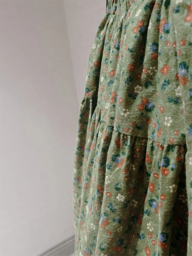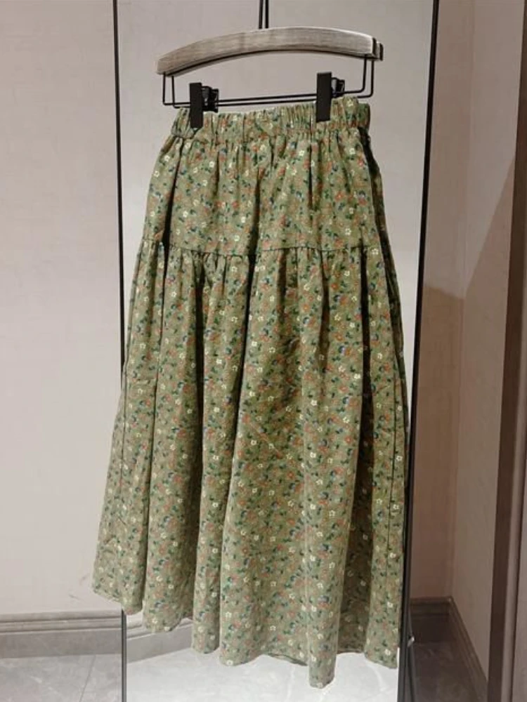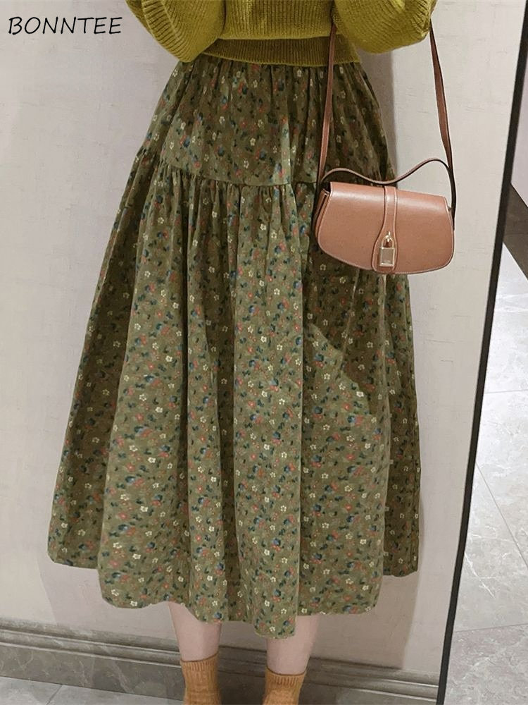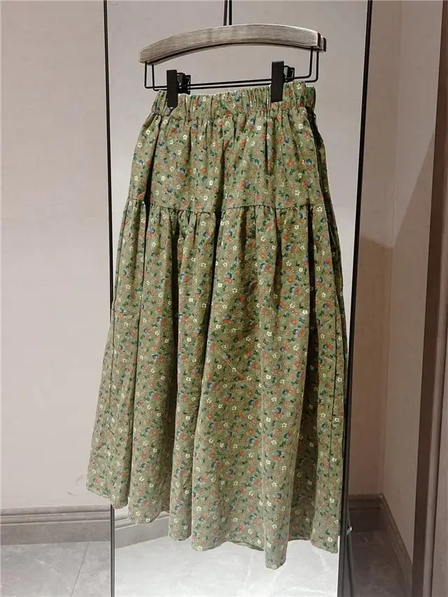 Vintage Midi Skirts Women A-line French Style Printed Simple Elastic Waist Gentle New Spring Prairie Chic All-match Fashion OOTD